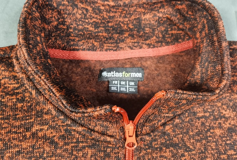 Atlas For Men Herren Fleece Pullover Orange/Schwarz – Half-Zip – Größe 3XL | 858
