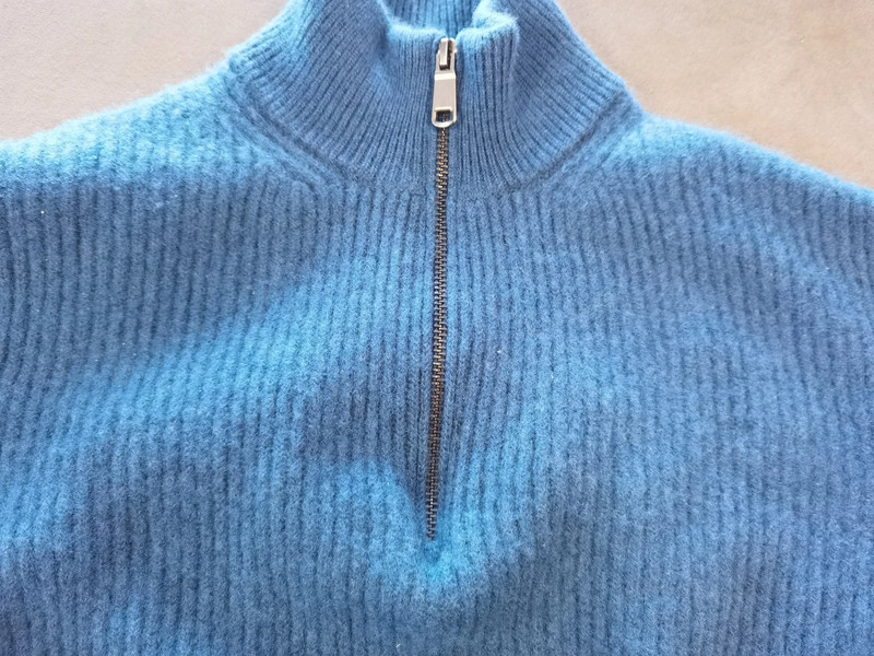 Größe & Passform: Der Pullover hat die Größe S und passt ideal bei einer Konfektionsgröße von etwa 46. Die Passform ist als regular fit zu beschreiben, also weder zu eng noch zu weit. Genauere Maße sind auf den Fotos gut zu erkennen.