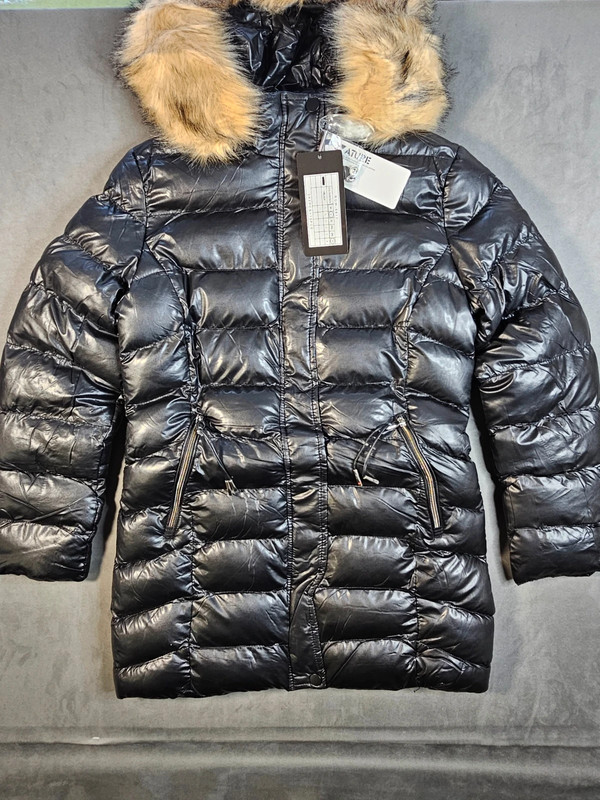 winterjacke damen, pufferjacke, warm, kunstfellkapuze, elegant, casual, neu mit etikett, second hand, nachhaltig, ature, tailliert, regular fit, dick gefüttert, weich, schwarz