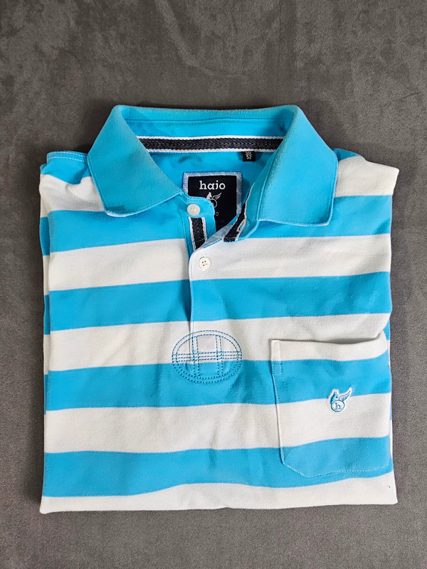 Keywords: polo-shirt herren, blau weiß, gestreift, casual, sportlich, sommer, regular fit, second hand, nachhaltig, herrenmode, vintage, komfortabel, hajo, freizeitshirt