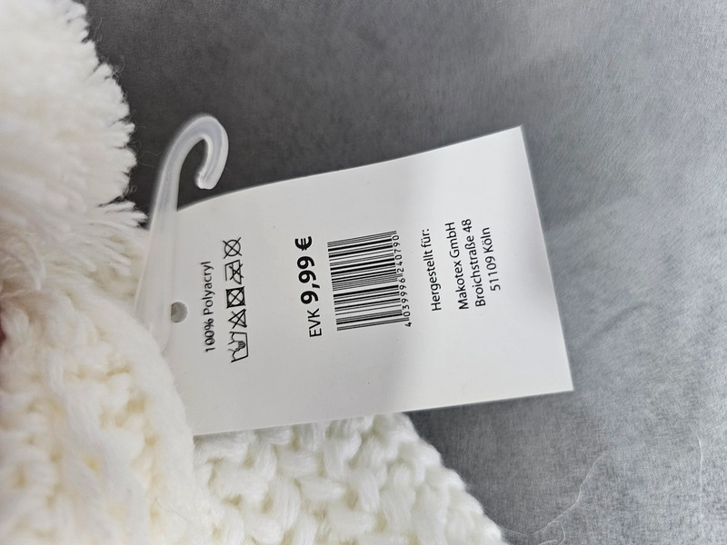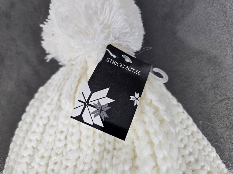 Schreibe die erste Rezension für „Weiße Strickmütze mit Bommel und Fellimitat | 272“