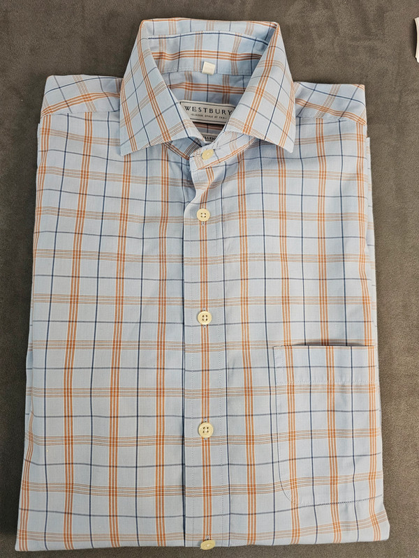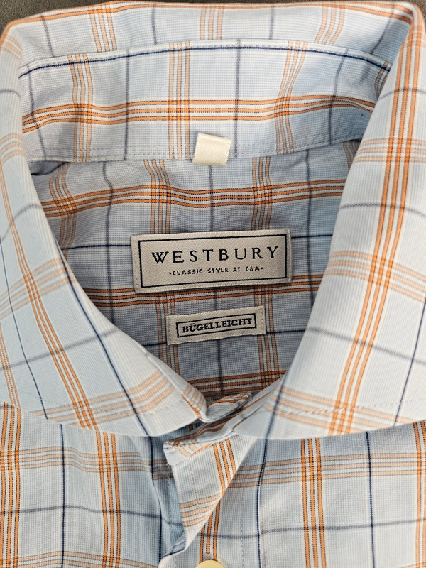 Schreibe die erste Rezension für „Westbury Kurzarmhemd Kariert Blau Orange Größe L | 98“